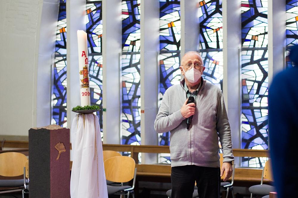Inhaltlich setzte Wolfgang Rensinghoff bei der alltäglichen Erfahrung von Totengedenken an und nutzte eine Steele, die ebenfalls in der Kirche stand, um den Schülerinne und Schülern das christliche Totengedenken begreiflicher zu machen: