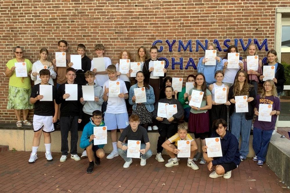 Die Schülerinnen und Schüler der 9b sind Preisträger beim politischen Wettbewerb „Alle für Eine Welt - Eine Welt für alle“. Weit über hundert Schulen hatten sich in Berlin im Frühjahr beworben. Der Wettbewerb wurde sowohl vom Bundespräsidenten als auch von Svenja Schulze, Bundesministerin für wirtschaftliche Zusammenarbeit und Entwicklung, unterstützt.