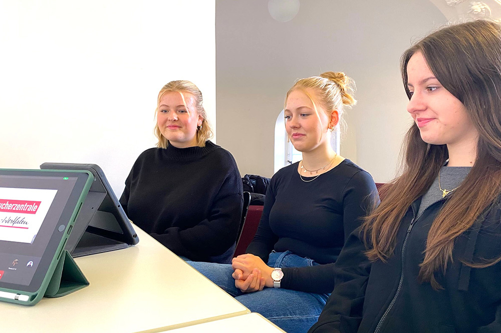 Bereits seit einigen Jahren arbeitet die Loburg mit der Verbraucherzentrale NRW zusammen. Im Rahmen dieser Kooperation hatte der Projektkurs „Gesunde Schule“ unter der Leitung von Herrn Bopp Frau Gembalies-Wrobel von der Verbraucherzentrale zu einer Videokonferenz zum Thema „Gesunde Schulverpflegung“ eingeladen. Genutzt wurde diese Videokonferenz, um zusätzliche Fachkenntnisse über Themen wie vegetarische Alternativen und einer weiteren Projekt-Strukturierung zu erlangen. Die Anregungen und Ideen von Frau Gembalies-Wrobel waren besonders hilfreich im Hinblick auf die weitere Vorgehensweise und zukünftige Kommunikation mit allen Beteiligten, wie z.B. dem Küchenteam oder der Schulleitung.