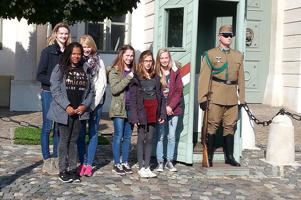 Nachdem unsere ungarischen Austauschpartner Mitte August eine Woche bei uns in Ostbevern verbrachten, machten wir uns am 20.10.2015 auf den Weg zum Gegenbesuch in Ungarn. Es ging schon um 2.30 Uhr an der Schule los, sodass wir bereits um 7.45 Uhr in Wien landeten. Dieses Ziel mag auf den ersten Blick verwundern, da wir doch eigentlich nach Ungarn unterwegs waren, aber unsere gastgebende Schule befindet sich direkt an der österreichisch-ungarischen Grenze, sodass der Flughafen Wien näher liegt als der in Budapest.