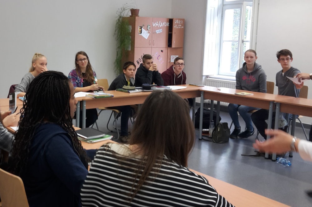 In Ungarn vermischen sich die Einflüsse westlicher und östlicher Kulturen aus mehr als 1000 Jahren Geschichte, was uns in Köszeg direkt bei der Stadtrallye am Mittwoch auffiel, da die kleine Stadt (11.000 Einwohner) von der Jurisicsburg dominiert wird, sich aber auch Kirchen im Donaubarock, eine jüdische Synagoge und natürlich Häuser aus Zeiten des Kommunismus finden lassen. Die erste Nacht verbachten wir zusammen mit unseren Austauschpartnern im dortigen Internat, um uns den z.T. recht langen Anfahrtsweg per Bus zur Schule zu ersparen. Am Donnerstag nahmen wir dann am Unterricht und an einem Schulfest teil, bei dem wir auch die Gelegenheit bekamen, uns und die Loburg vorzustellen. Diese Veranstaltung in der Aula mit anschließendem Kastanienbraten auf dem Schulhof läutete für unsere Gastgeber die Herbstferien ein.