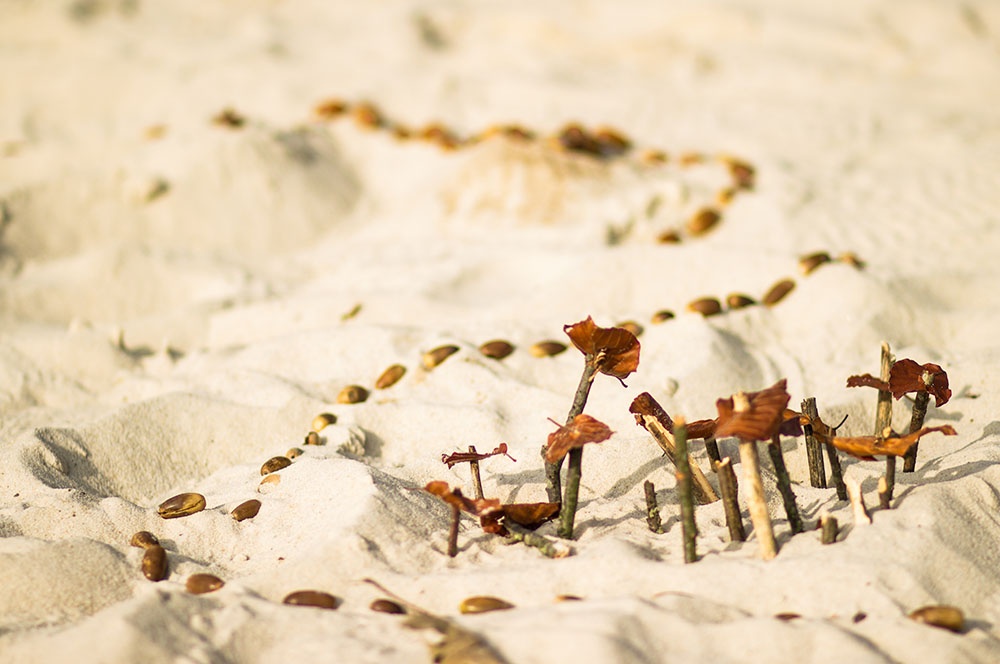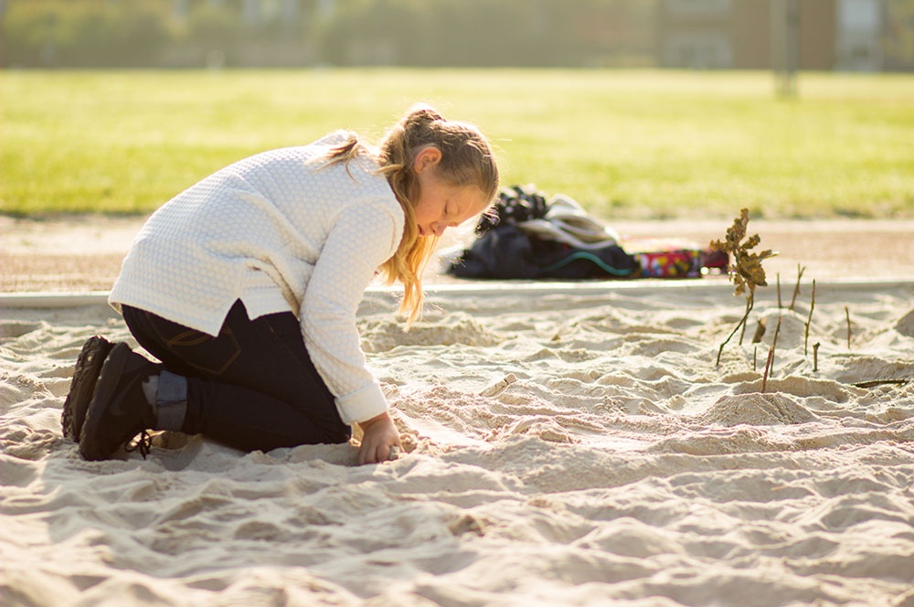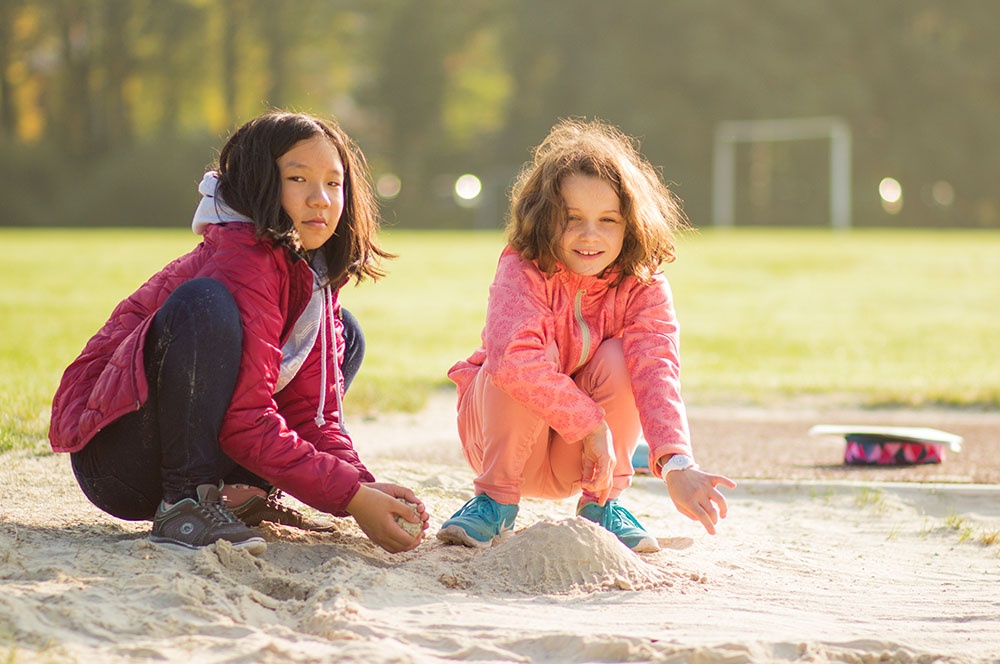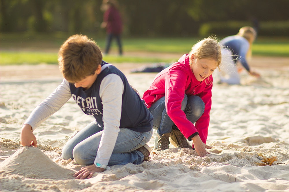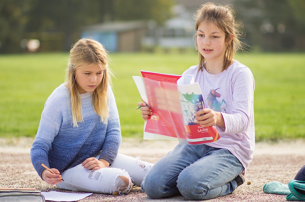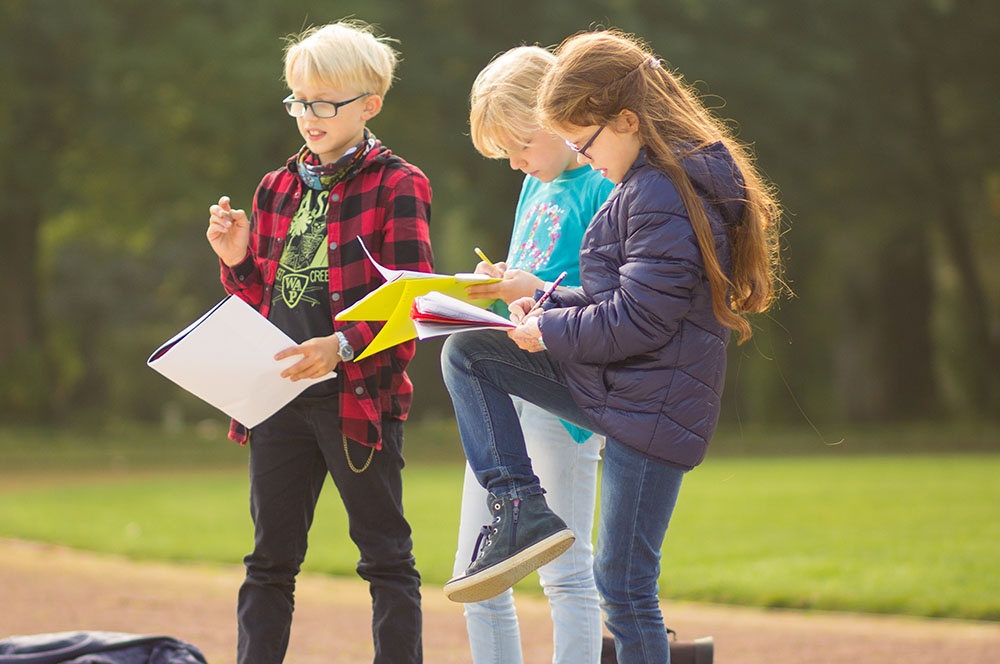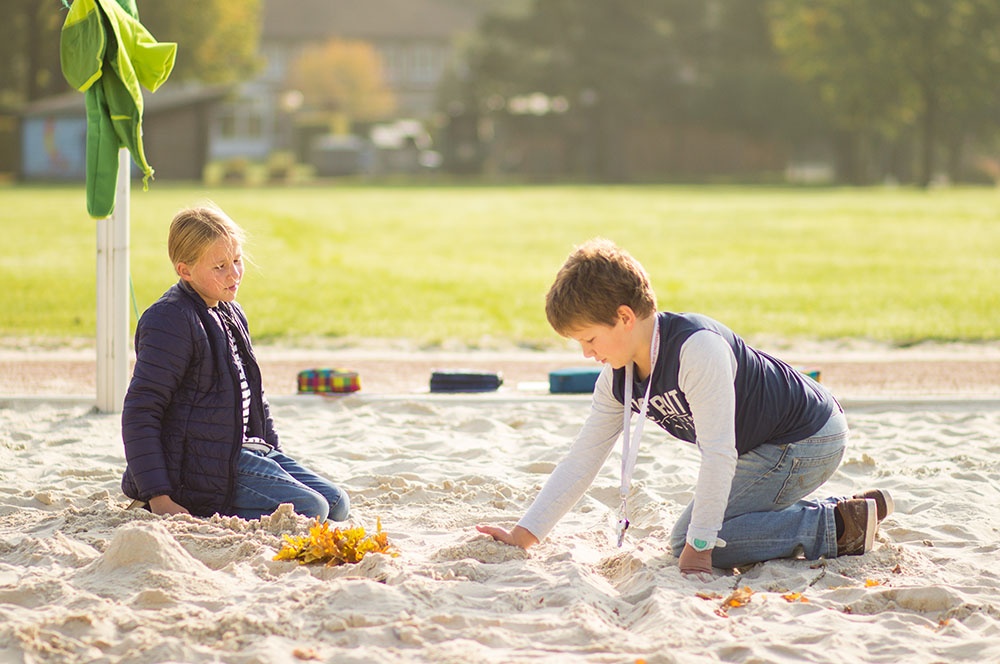 Eine dieser Methoden ist die Unterrichtseinheit ‚Von der Landschaft zur Karte‘. Die Schülerinnen und Schüler dürfen in Teams eine Landschaft im Volleyballfeld der Loburg erstellen. Die Kinder können hierbei ihrer Fantasie freien Lauf lassen, einzige Bedingung ist die Gestaltung von Hügeln innerhalb der selbstentworfenen Landschaft. So kommen die Kinder zu kreativen Elementen wie dem bunten Berg, der Elefantenwiese oder der berüchtigte Berg-City.