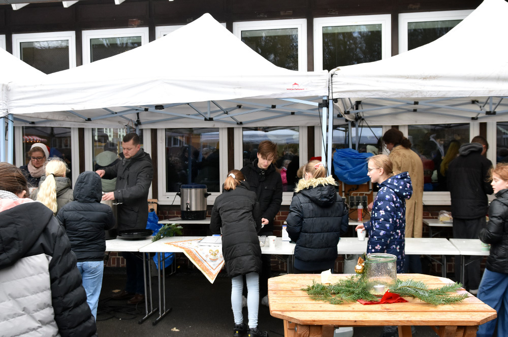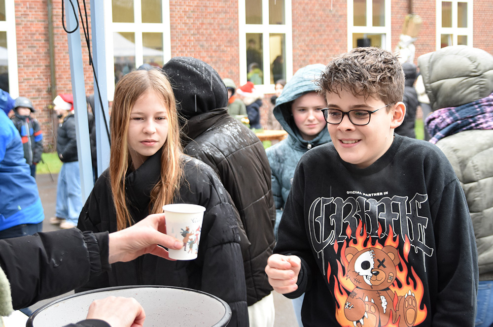 Die Stände mit Waffeln, Crepes, Würstchen und heißem Punsch sorgten für wohltuende Wärme und verbreiteten den unwiderstehlichen Duft von Weihnachten auf dem Schulhof.