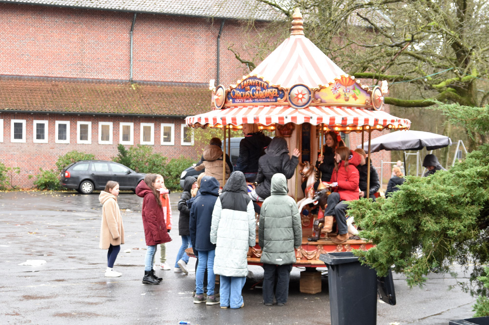 Zur großen Freude der Jüngsten – aber auch einiger Lehrer:innen – gab es ein nostalgisches Karussell, während die Möglichkeit zum Eisstock-Schießen den sportlichen Ehrgeiz der Loburger:innen weckte. Weihnachtliches Talent wurde im Wettbewerb um den originellsten Weihnachtspullover und den schönsten Weihnachtsbaum bewiesen – herzlichen Glückwunsch an die 6c für die Wahl ihres geschmückten Baumes zum Schönsten der Loburg! Die Adventskalender-Tombola mit dem Hauptgewinn – Karten für ein BVB-Spiel – brachte zusätzliche Spannung und Glücksmomente – herzlichen Glückwunsch Cayan!