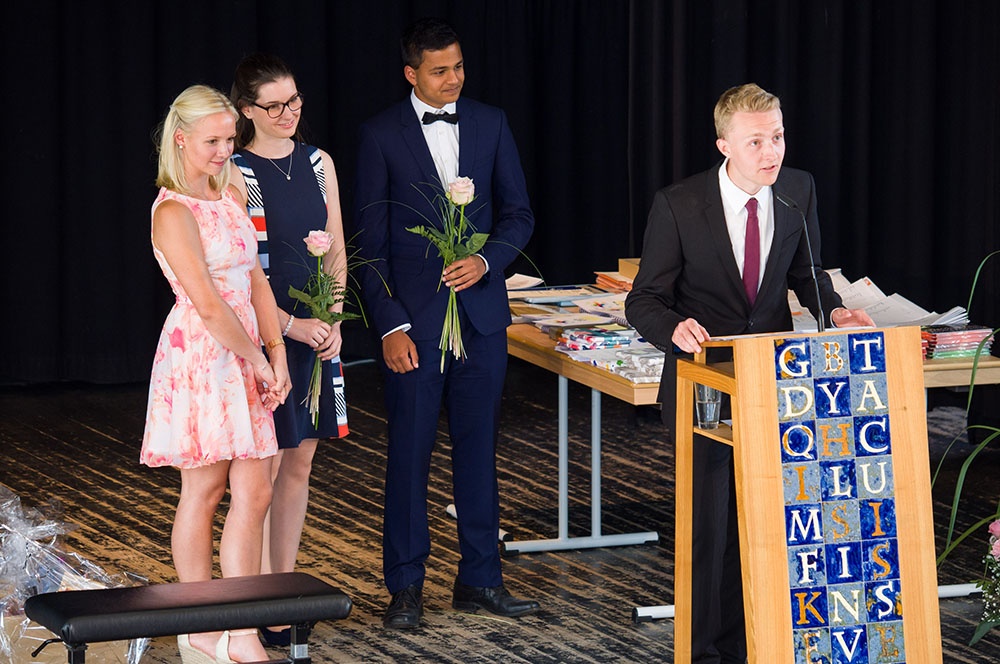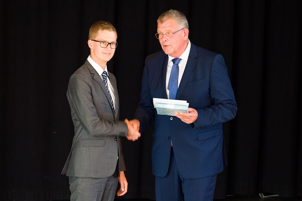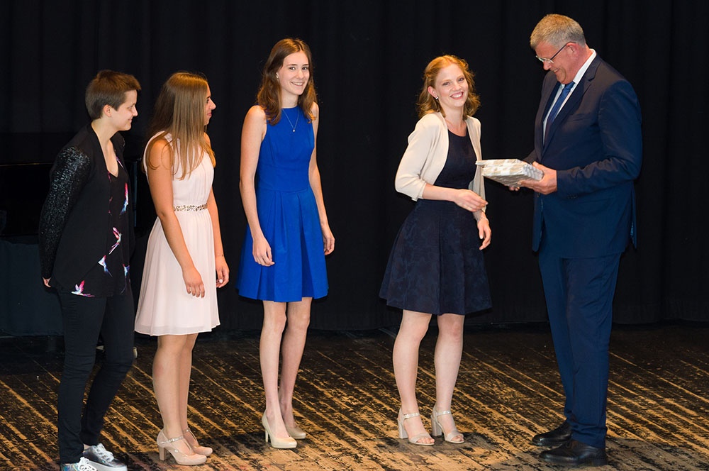 Als Vertreterin der Eltern sprach Edith Kessler schließlich ihre Anerkennung aus und ermutigte die jungen Menschen, ihren Weg zu gehen, bevor Benedikt Giglio als Repräsentant des Ehemaligenvereins den Sozialpreis überreichte.