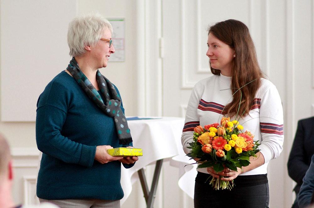 Im Rahmen einer Feierstunde im Rittersaal des Schlosses betonte der Schulleiter dann ihr Engagement, das weit über den Unterricht hinausging. So hat sie sich unter anderem als Betreuerin der Mädchen- Fußballmannschaft, als Leiterin der Turn-AG sowie als Begleitung verschiedener Exkursionen für die Schule eingesetzt.