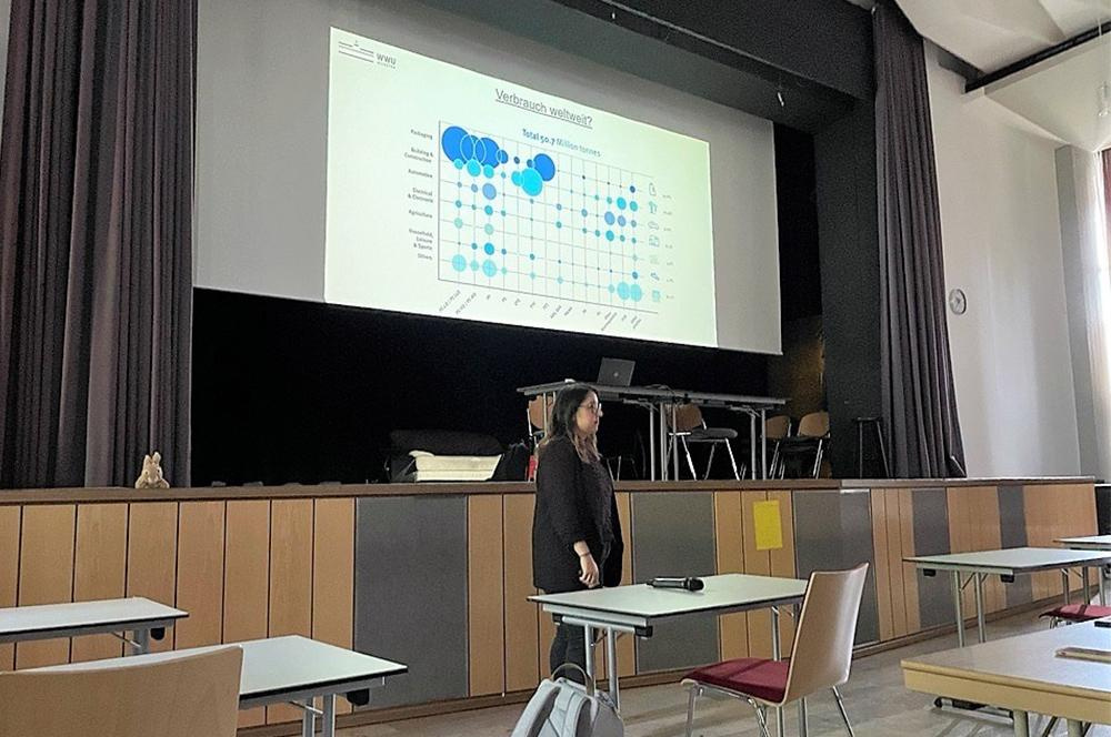 Die Naturwissenschaftskurse der Klasse 9, sowie der EF Kurs Chemie von Frau Naeve kamen am Donnerstag in den Genuss, aktuelle wissenschaftliche Forschung aus erster Hand zu erfahren. M.Sc. Suna Azhdari vom Center for Nanoscience (SoN) der Westfälischen Wilhelms-Uiversität Münster (WWU) stellte in einer Doppelstunde den interessierten JungnaturwissenschaftlerInnen der Loburg ihre Arbeit zum Thema „wasserlösliche und bioabbaubare Polymere“ vor. Mit einem großen Appell und ausführlichen Erklärungen stellte die Vortragende dar, dass wir als Gesellschaft schnellstmöglich Maßnahmen gegen die große Belastung der Welt durch Plastik und Mikroplastik ergreifen müssen. Dabei wies sie vor allem darauf hin, dass einer der besten Wege dazu sei, selbst NaturwissenschaftlerIn zu werden und so die Forschung auf diesem Themengebiet voranzutreiben. Ein Einblick in das Forschungsprojekt von Frau Azhdari zeigte, dass es bereits ein hohes Interesse gibt das Problem durch Innovationen zu lösen. Der richtige Weg ist eingeschlagen. Es wurde aber auch deutlich, dass es noch eine Menge Zeit und Arbeit für die Umsetzung der Ideen benötigt wird. Ein Grund mehr bereits jetzt den eigenen Plastikverbrauch zu überdenken und so unsere Umwelt zu schonen.