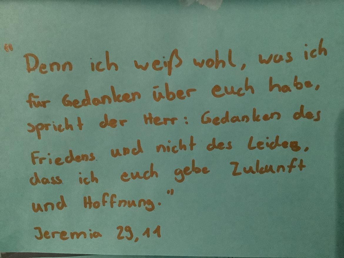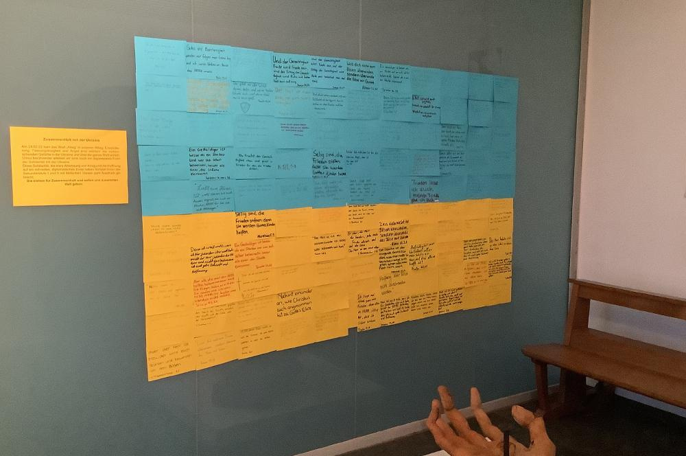 Diese Solidarität, die klare Ablehnung von Krieg und die Hoffnung auf ein schnelles, diplomatisches Ende haben Schüler:innen der Sekundarstufe I und II im Religionsunterricht mit biblischen Versen zum Ausdruck gebracht.